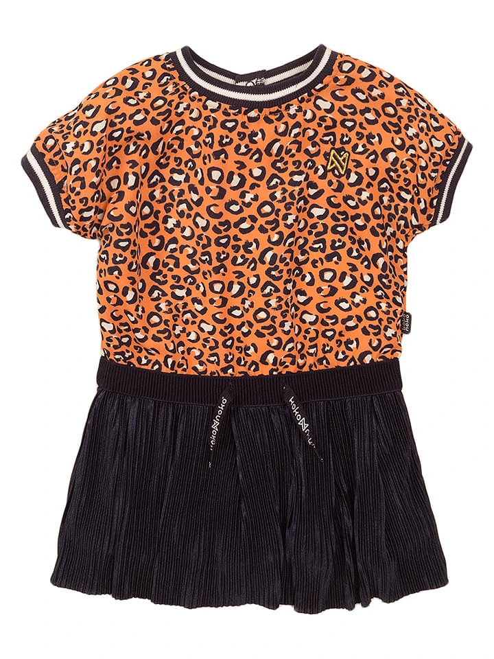 Kleid In Dunkelblau/ Orange