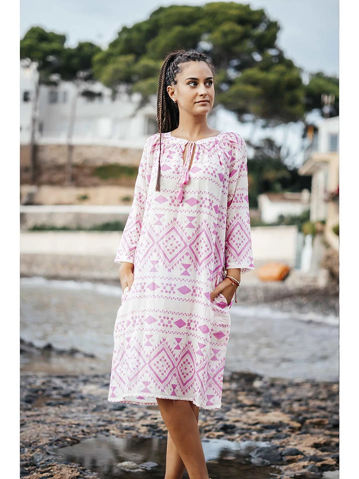 Kleid In Weiß/ Pink/ Bunt