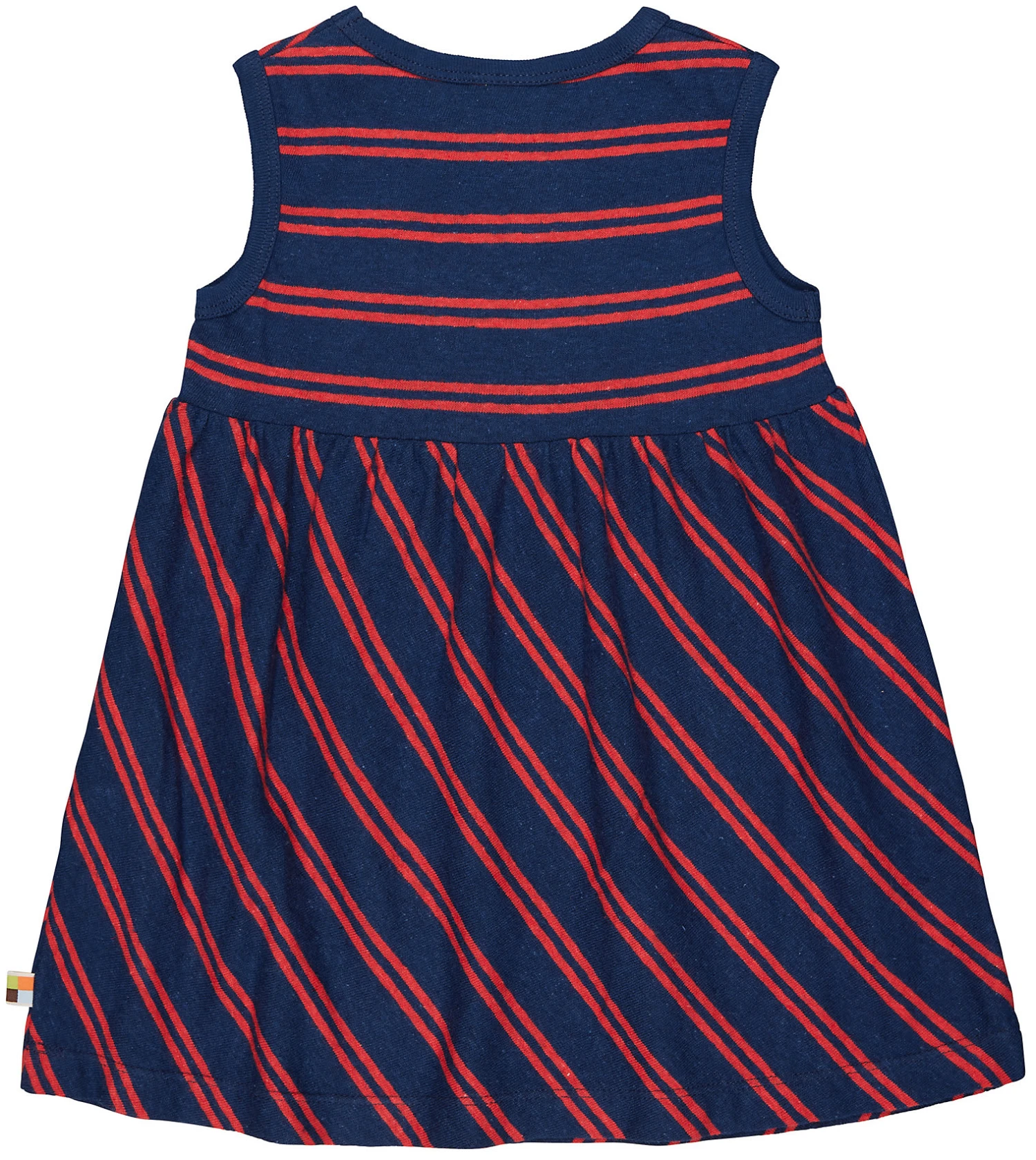 Gestreiftes Shirt mit kühlendem Leinen. Vorne und hinten mit Passe. Der untere Teil ist diagonal gestreift. Ohne Ärmel. Fähnchen an der Seitennaht. Made in Portugal. Waschbar bei 30°C.