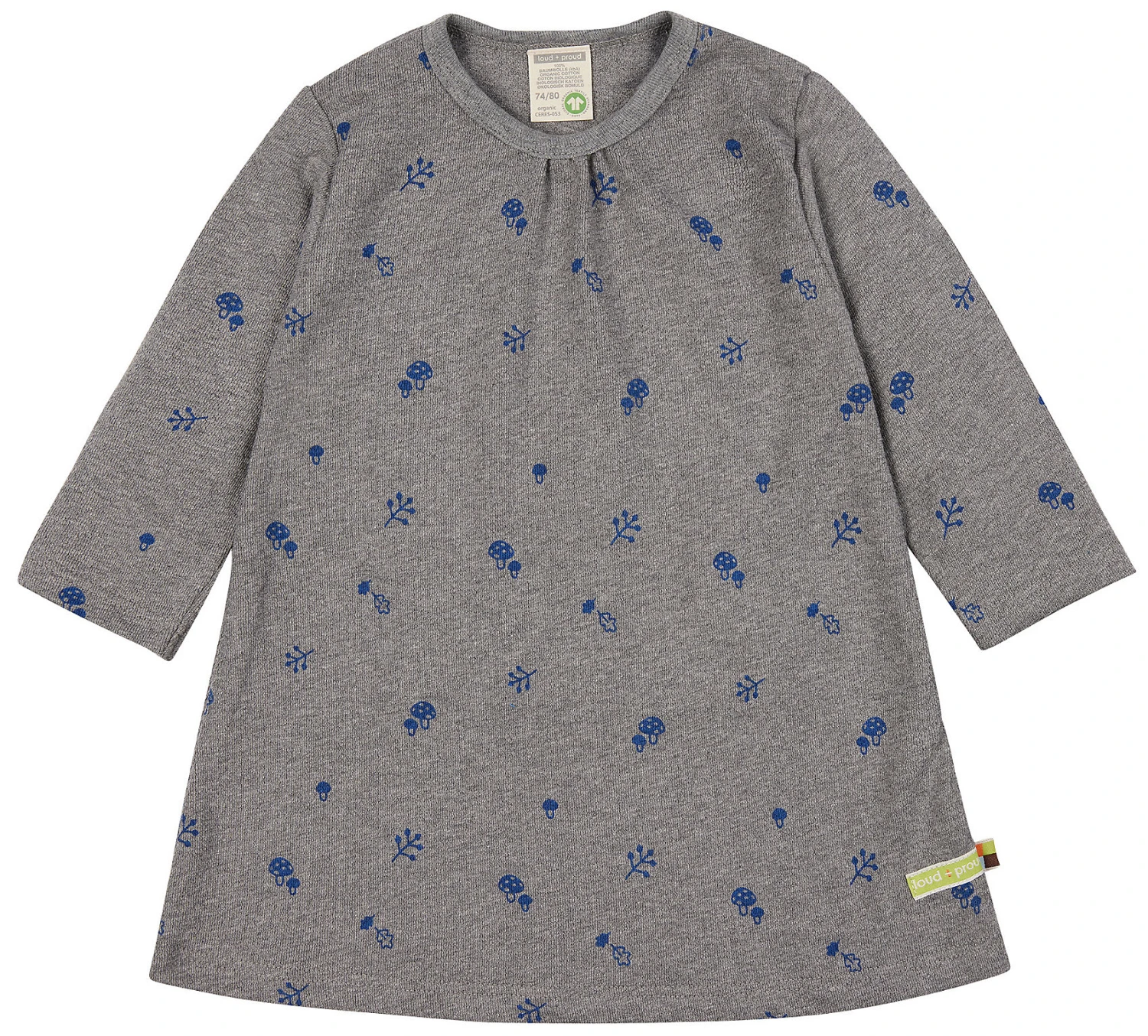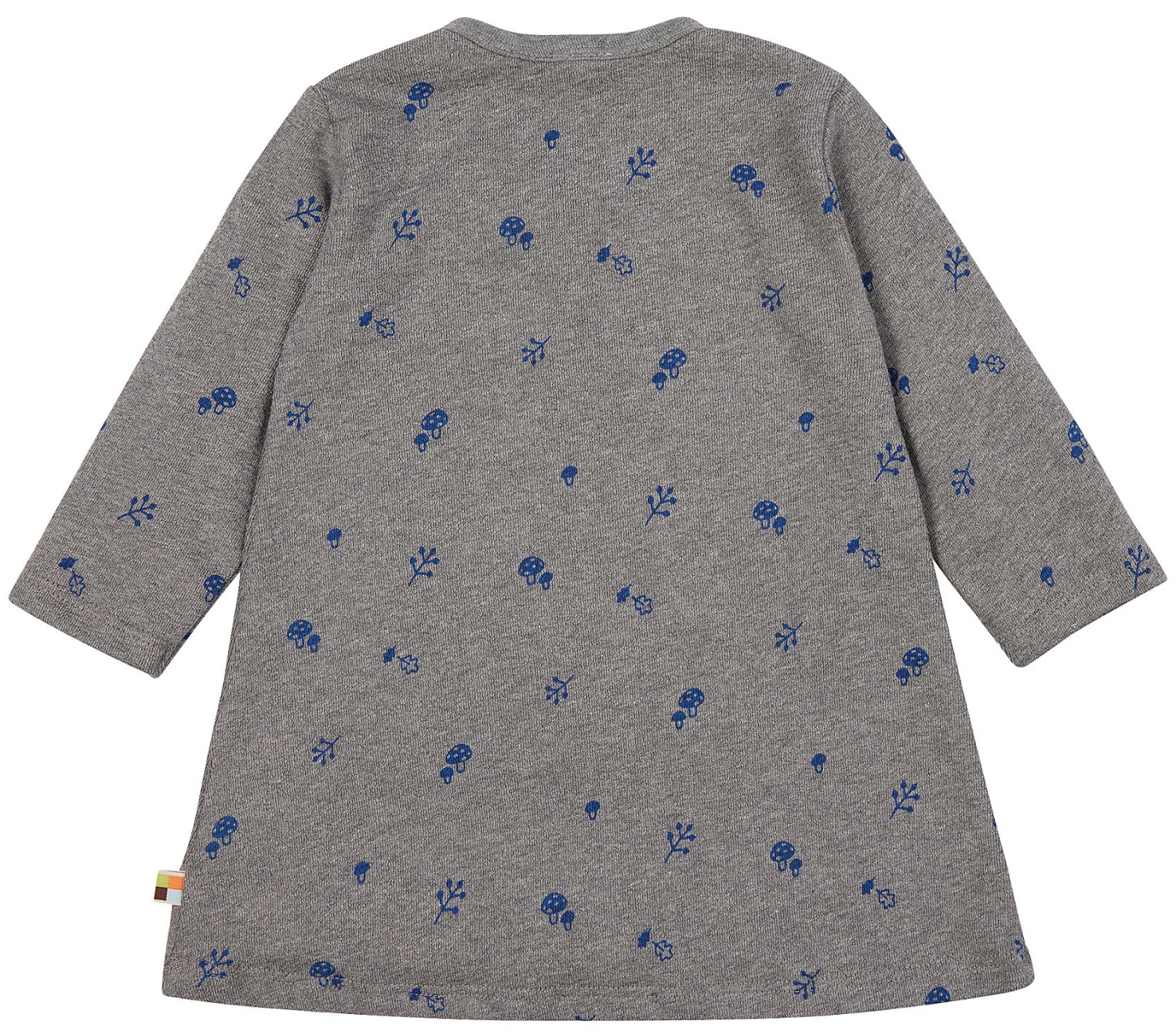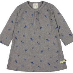 Kleid aus weichem Strukturjersey mit ganzflächigem Druck. Am Halsloch gerüscht. Logoetikett mit Fähnchen an der Seitennaht. Made In Hungary. Waschbar bei 30°C