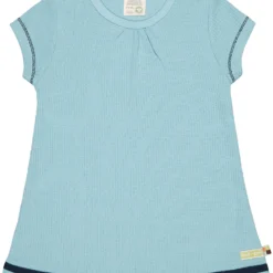Kleid in weicher Waffel-Struktur. Saum mit aufgesetztem kontrastfarbigem Band. Am Halsloch gerüscht. Kontrastfarbige Nähte am Ärmelsaum. Logoetikett mit Fähnchen an der Seitennaht. Made In Portugal. Waschbar bei 30°C.